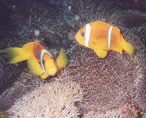![]() Dit soort clownsvisjes zijn onvermijdelijk in de Rode Zee, dus ook in Djibouti. De anemonen bestreken soms enkele vierkante meters. Alle onderwater fotos zijn gemaakt door Claudia met de geleende camera van Willem Butter. | Het