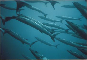 gevangen; we werden omsingeld door een enorme school barracuda’s en we zagen