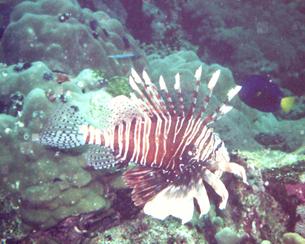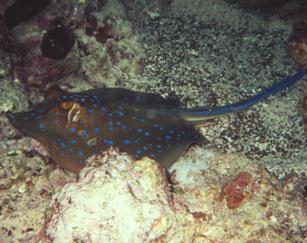 ![]() Een Lionfish of koraalduivel. | ![]() Een blue spotted stingray. |